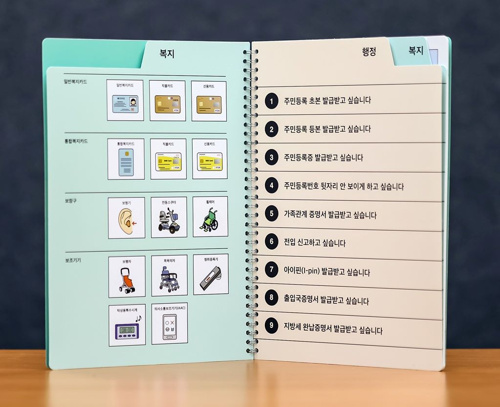 책자는 기관별 업무 특성에 맞게 구성됐다. 보건소 책자에는 소변검사, 예방접종 접수 방법 등이 그림으로 표현돼 있으며, 동주민센터 책자에는 주민등록 발급, 출생 신고, 장애인 연금·수당 신청 등의 주요 민원 절차가 포함됐다. 이용자는 그림을 손가락으로 가리켜 원하는 서비스를 요청할 수 있으며, 담당자는 이를 쉽게 이해하고 대응할 수 있다.