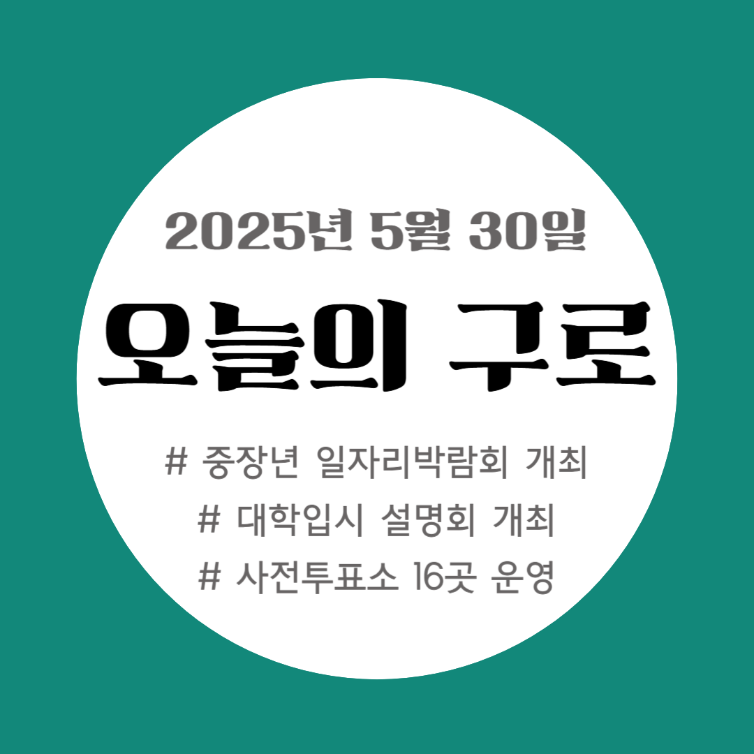 오늘의 구로(2025년 5월 30일자): 중장년 일자리박람회 개최, 대학입시 설명회 개최, 사전투표소 16곳 운영