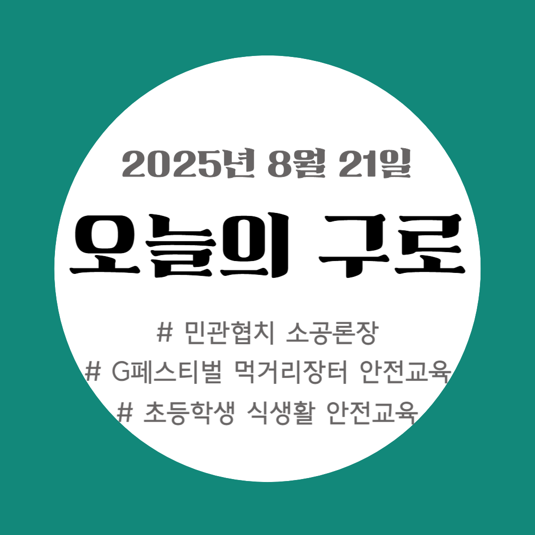 오늘의 구로(2025년 8월 21일): 민관협치 소공론장, 초등학생 식생활 안전교육, 구로G페스티벌 먹거리장터 안전교육