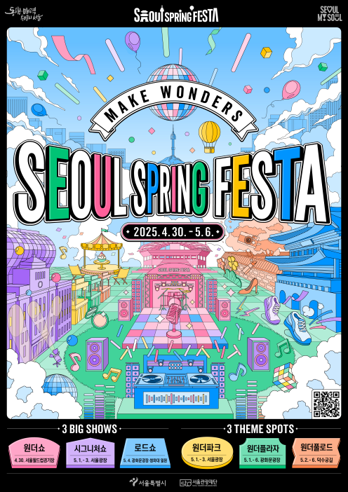 이 외에도 서울광장은 축제 기간 동안 ‘원더파크’로 변신해 다양한 즐길 거리를 제공한다. 5월 1일에는 서울 미쉐린 선정 식당과 재즈 공연이 어우러진 ‘소울푸드파티’, 5월 2일에는 ‘스트릿우먼파이터’ 출연진과 함께하는 ‘K-댄스파티’가 열린다. 관련 프로그램 신청은 4월 2일부터 누리집에서 확인 가능하다.