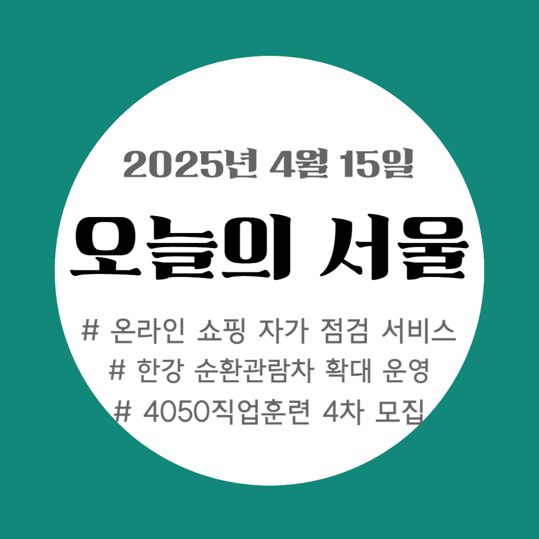 오늘의 서울(2025년 4월 15일자): 온라인 쇼핑 자가 점검 서비스, 한강 순환관람차, 4050직업훈련 4차모집