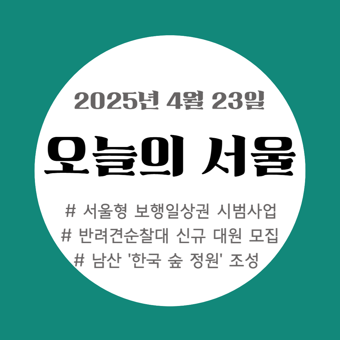| 오늘의 서울(2025년 4월 22일자): 서울야외도서관, 따릉이 가족권, 반려동물 시민학교 (1) | 2025.04.22 |