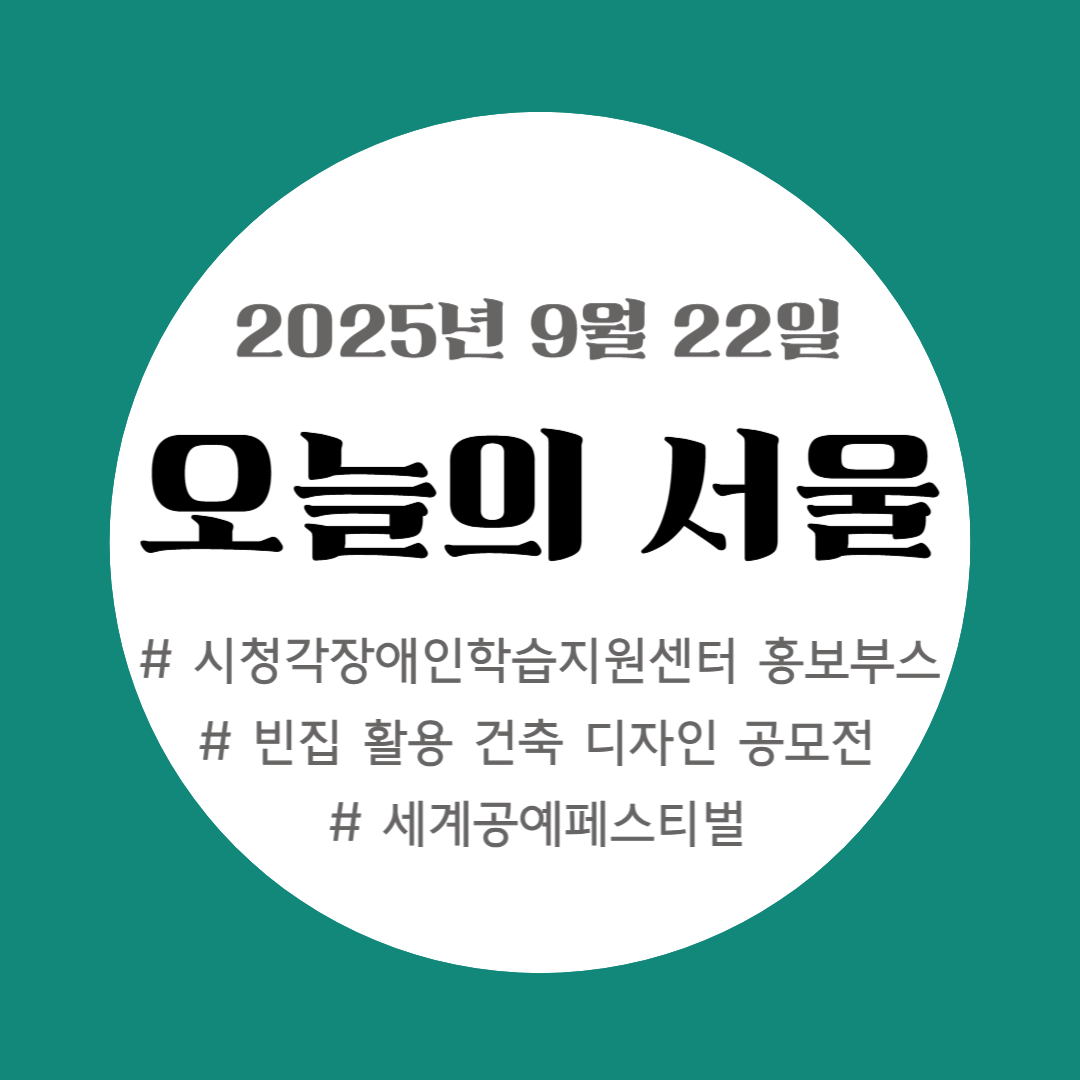오늘의 서울(2025년 9월 22일자): 빈집 활용 건축 디자인 공모전, 정원박람회서 시청각장애인학습지원센터 홍보, 세계공예페스티벌